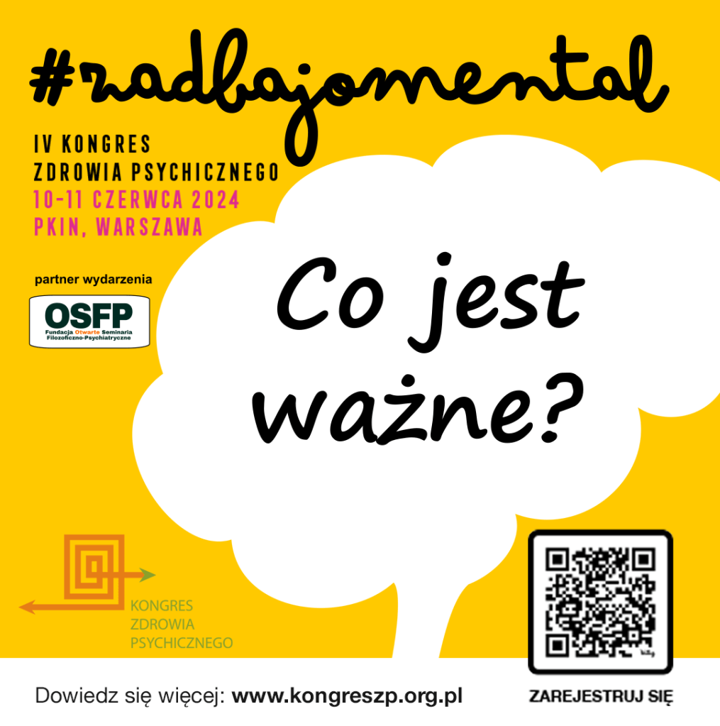 Po raz czwarty włączamy się w Kongres Zdrowia Psychicznego zostając jego partnerem. W tym roku Kongres odbywa się pod hasłem „Razem ku zdrowiu psychicznemu – wspólny cel, wspólne dobro!” w dniach 10-11 czerwca w Pałacu Kultury i Nauki w Warszawie. Każdy panel prowadzony jest wspólnie przez 2 osoby, w tym eksperta przez doświadczenie.